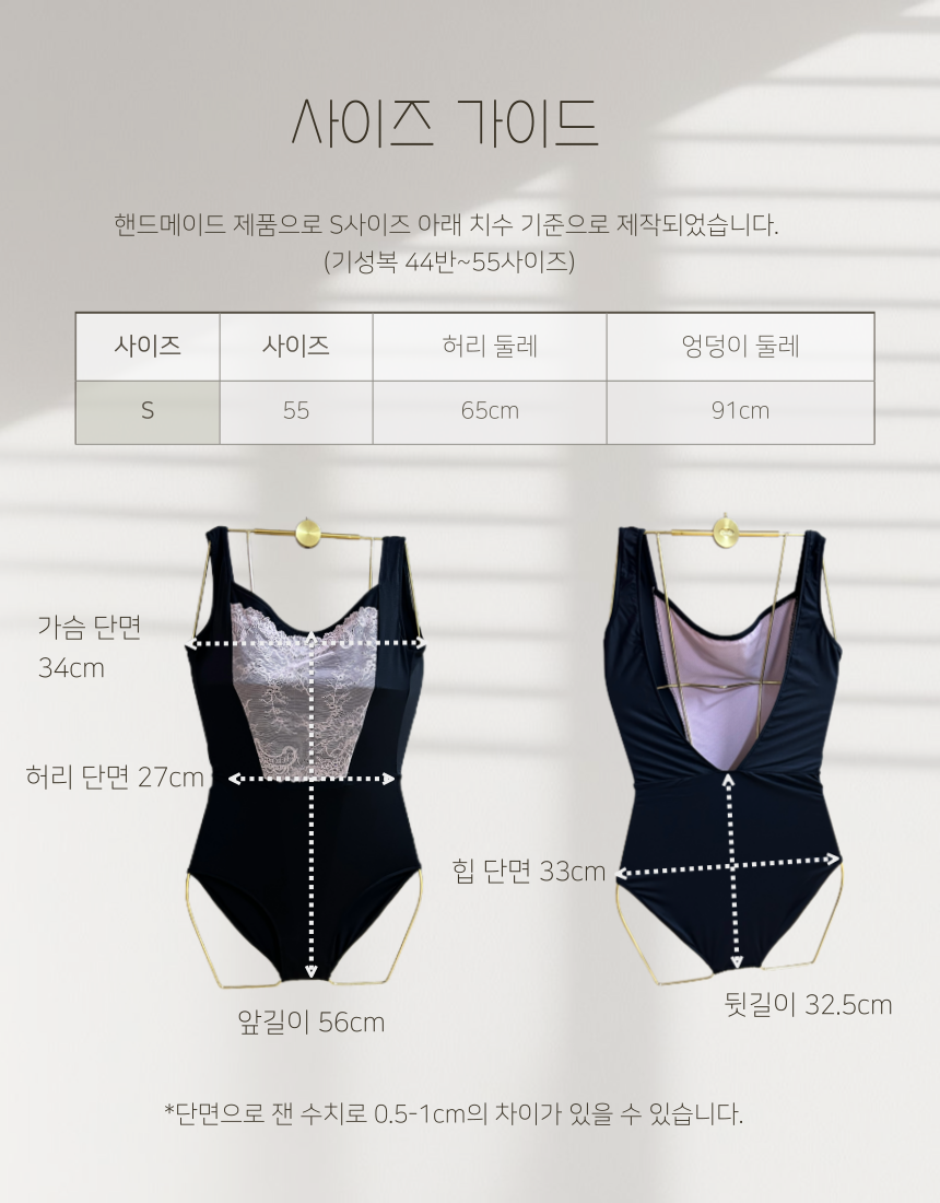 라이트 그레이 + 블랙 레이스 레오타드는 샘플용으로 제작되었습니다.